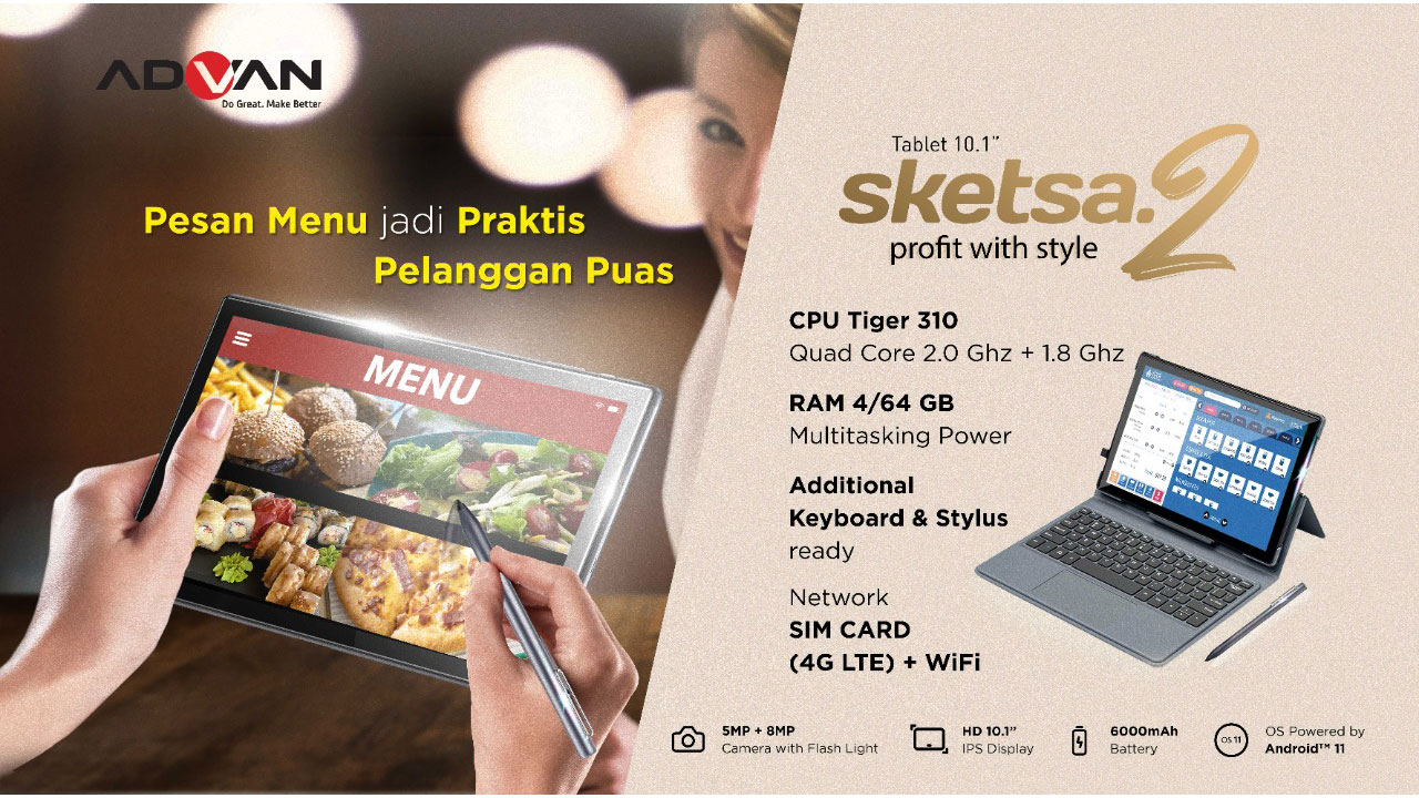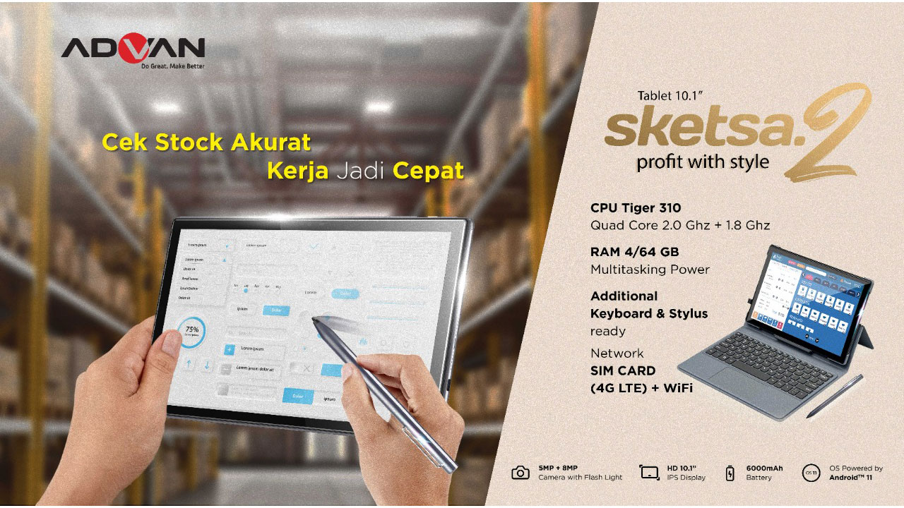 Membuka tahun 2022, ADVAN langsung membuat gebrakan dengan meramaikan pasar tablet Tanah Air. Ya! Pabrikan perangkat gadget lokal ini telah mengumumkan kehadiran tablet terbarunya, yakni ADVAN SKETSA 2. Tablet terbaru ini akan menjadi perangkat yang cocok untuk semua anggota keluarga, untuk dipakai bekerja maupun belajar.