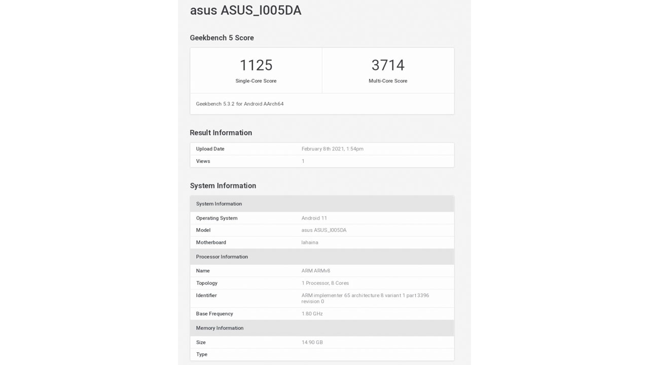 Dalam pengujian Single-Core, skor yang dihasilkan mencapai 1.125 poin. Sementara, pada pengujian Multi-Core, skor yang dihasilkan adalah 3.714 poin. Sebelumnya, pada bulan Desember lalu, perangkat yang diduga kuat sebagai ASUS ROG Phone 5 dengan varian RAM 8 GB juga sudah muncul di Geekbench.