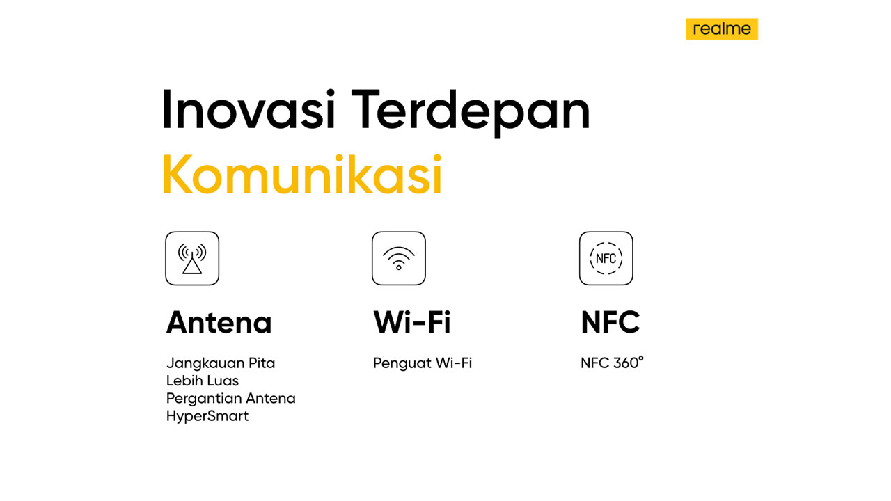 Dalam hal penguat jaringan Wi-Fi, antena Wi-Fi dirancang secara simetris untuk memastikan kekuatan sinyal yang lebih seimbang di sekitar smartphone. Dalam uji yang dilakukan oleh realme, desain ini terbukti dapat meningkatkan stabilitas sinyal sebesar 20% dibandingkan dengan desain antena Wi-Fi yang tidak simetris.