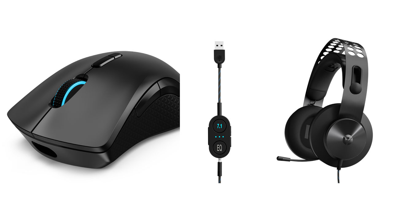 Perangkat ini cocok digunakan untuk bermain game action, mendengarkan musik, atau menonton film favorit, serta memiliki desain ear cup yang ergonomis. Terdapat pula dua pilihan mouse, Lenovo Legion M600 RGB Wireless Gaming Mouse dan Lenovo Legion M500 RGB Gaming Mouse.