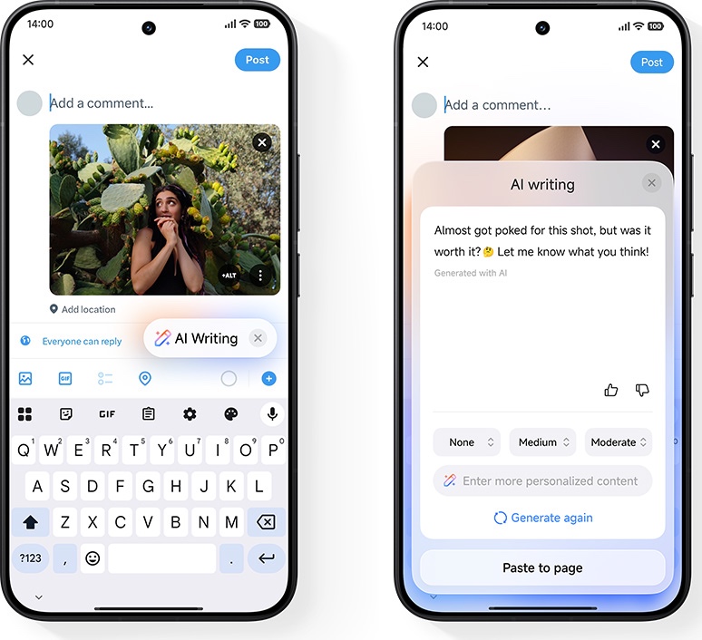 AI Writing & DeepThink Mode: Membantu pengguna mengolah teks dan memberikan ringkasan informasi yang cerdas pada aplikasi Catatan (Notes).