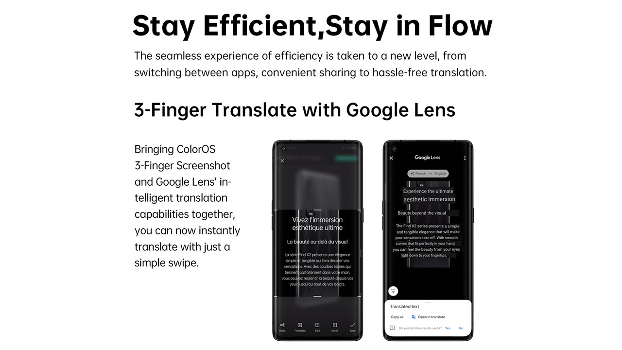 ColorOS 11 juga telah memperkenalkan UI First 2.0, yang menggabungkan mesin lag-reduce milik OPPO dengan Quantum Animation. Hal ini meningkatkan pemanfaatan RAM sebesar 45%, memperbaiki tingkat respons hingga 32%, dan kecepatan frame rate sebesar 17%.