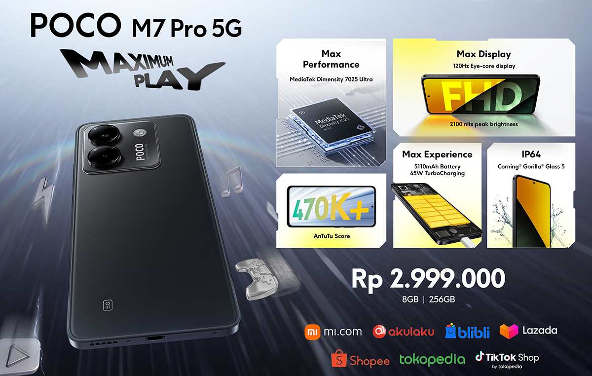 POCO M7 Pro 5G jadi paket komplit buat gamers yang mau gaya, performa ngebut, feel gaming maksimal! Nggak heran jadi the real deal buat para gamer. Performa maximum, layar maximum, fitur maximum, semuanya dengan Rp2.999.000.