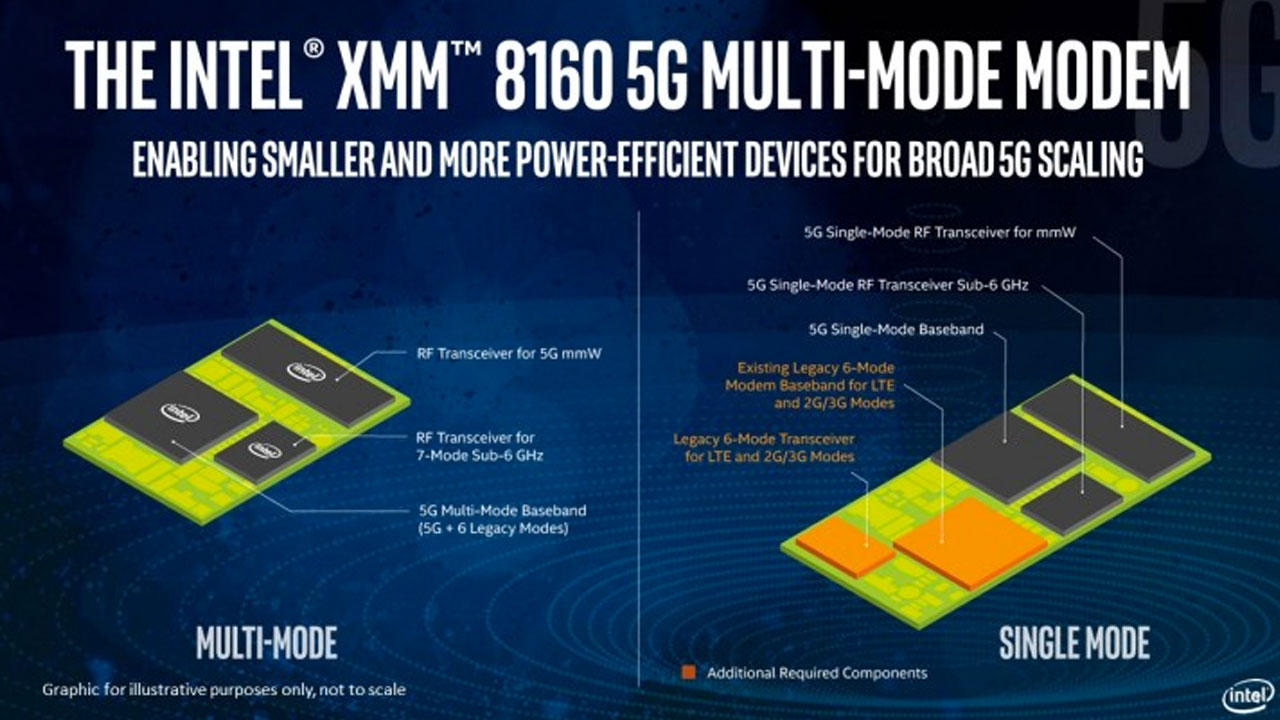 Intel telah merilis chipset modem 5G pertamanya, XMM 8160. Ini adalah modem multimode sehingga mendukung teknologi mmWave terbaru. Selain itu, Intel juga mengklaim bahwa kehadiran chipset ini dapat menyederhanakan motherboard dari sebuah smartphone, PC atau hotspot yang dikembangkan.
