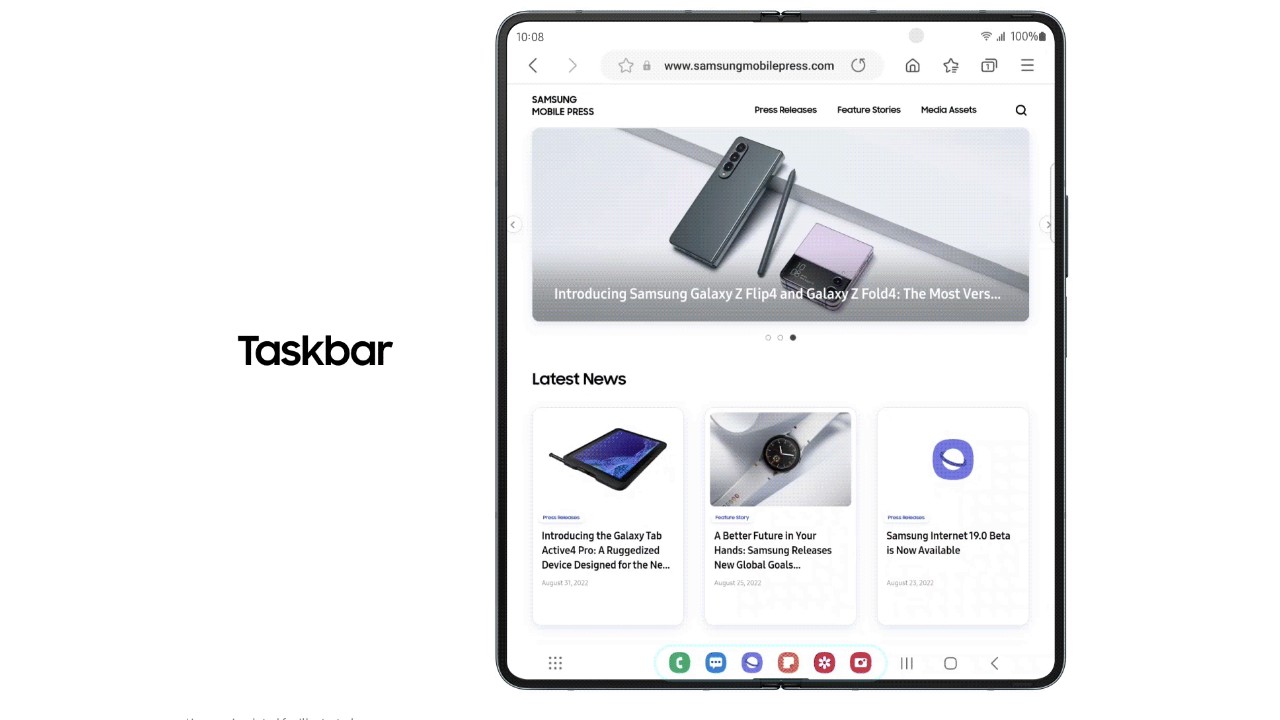 Seri Galaxy Z Fold selalu menghadirkan perubahan desain dengan berbagai cara untuk meningkatkan fungsionalitas ketika perangkat dibuka atau ditutup. Dengan Taskbar baru, kalian dapat mengakses dan beralih antar aplikasi lebih cepat dari sebelumnya, menghadirkan tampilan seperti PC yang familiar.