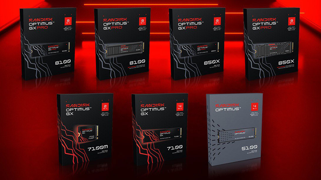 - Lini produk SANDISK Optimus GX PRO – seri flagship dari portfolio SANDISK Optimus™, SANDISK Optimus™ GX PRO merepresentasikan titik tertinggi. Drive ini dirancang untuk para developer, profesional, dan gamer yang mengejar terobosan teknologi terbaru serta performa tanpa kompromi yang ingin membangun PC AI, workstation, atau PC tingkat tinggi. SANDISK Optimus™ GX PRO mengombinasikan teknologi penyimpanan mutakhir dengan peningkatan kapasitas. Sebelumnya produk ini bermerek WD_BLACK™, termasuk WD_BLACK SN8100 NVMe SSD.
