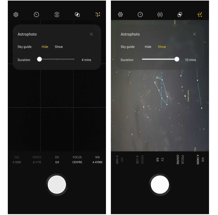 Dengan fitur ini, pengguna dapat mengambil bidikan eksposur panjang ketika memotret langit pada malam hari, bintang, dan konstelasi yang menakjubkan. Tak hanya itu, bahkan pengguna lebih leluasa untuk melihat lokasi konstelasi melalui aplikasi yang ditawarkan.