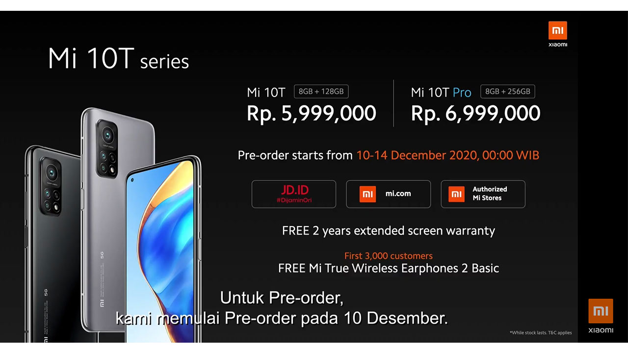 Bagi kalian yang tertarik membeli Mi 10T Pro, smartphone ini dibanderol dengan harga Rp6.999.000 dengan konfigurasi RAM 8 GB + ROM 256 GB. Sedangkan Mi 10T yang memiliki RAM 8 GB + ROM 128 GB ditawarkan dengan harga Rp5.999.000.