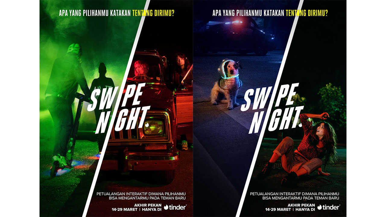 Menghadirkan video streaming interaktif ke dalam aplikasi Tinder pertama kalinya, Swipe Night memberikan pengalaman secara langsung kepada para pengguna untuk menentukan masa depan mereka. Pilihan para pengguna tidak hanya akan menciptakan sebuah cerita, tapi juga akan memengaruhi siapa calon match mereka.