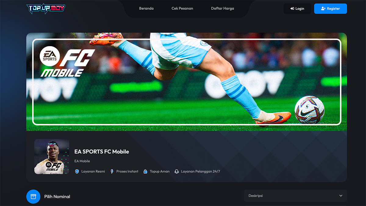 Untuk kemudahan, Anda bisa langsung mengunjungi halaman top up EA Sports FC Mobile di situs TopUpBoy. Di sana tersedia berbagai nominal yang bisa disesuaikan dengan kebutuhan Anda, baik untuk pemula maupun pemain pro.