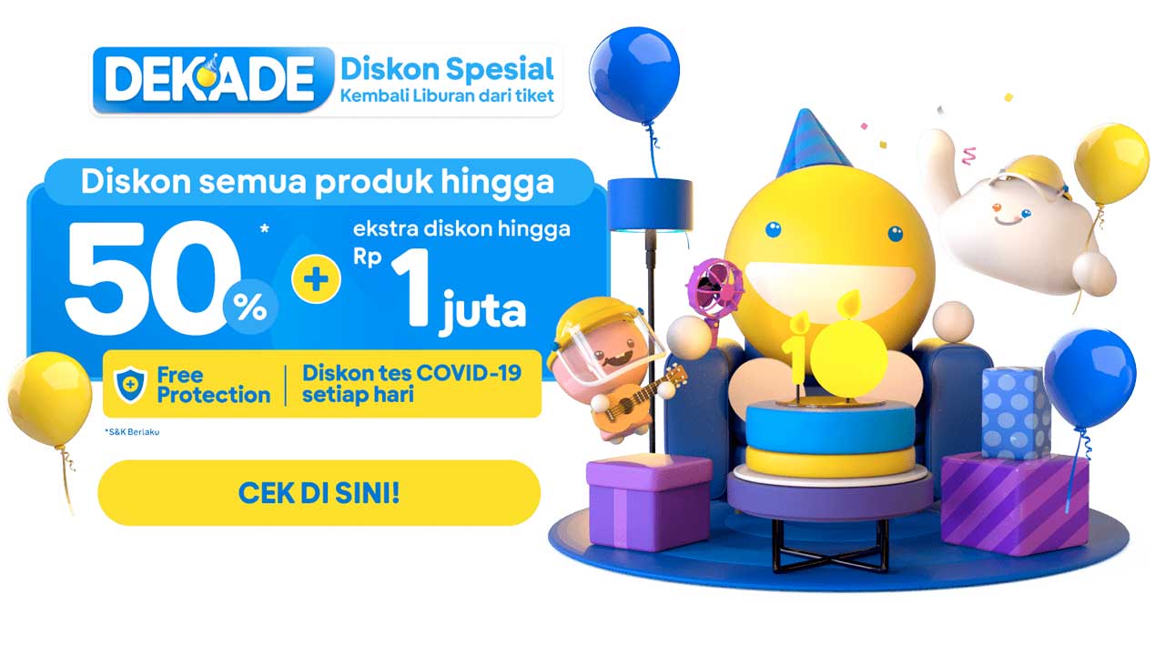 - Diskon hingga 20% + ekstra diskon hingga Rp 1 juta untuk semua produk yang tersedia di dalam fitur tiket TO DO, termasuk tes Covid-19.