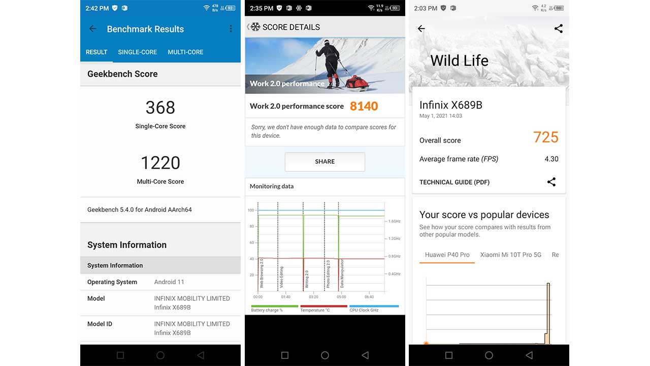 Hasil bencmark menggunakan Geekbench 5, PCMark (Work 2.0), dan 3DMark (Wild Life)