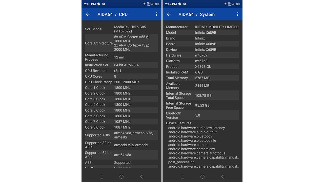 Helio G85 sudah memiliki CPU Octa-core dengan konfigurasi 2 x Cortex-A75 dengan clock speed 2.0 GHz dan 6 x Cortex-A55 dengan clock speed 1,8 GHz. Sementara, untuk mendongkrak grafisnya, chipset ini telah terintegrasi dengan GPU Mali-G52 MC2.