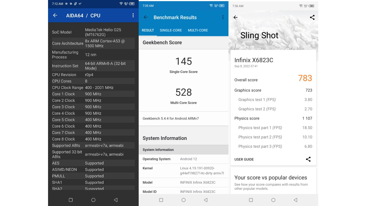 Namun, bagi kalian yang penasaran, Droidlime mencoba mencari tahu chipset yang ditanam oleh Infinix ke dalam smartphone ini. Melalui aplikasi AIDA64 akhirnya bisa ditemukan bahwa Infinix Smart 6 Plus dicekoki chipset buatan MediaTek, yakni Helio G25 dengan clock speed 2,0 GHz.
